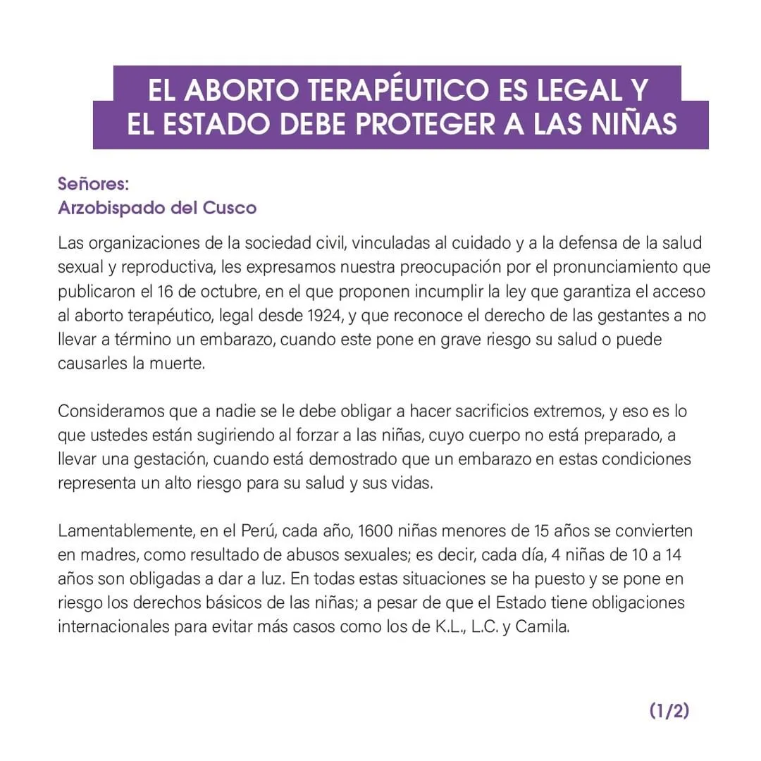 PRONUNCIAMIENTO: EL ABORTO TERAPÉUTICO ES LEGAL Y EL ESTADO DEBE PROTEGER A LAS NIÑAS